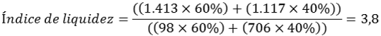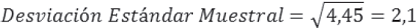 Por ejemplo, con los mismos datos utilizados en el ejemplo en el concepto de promedio sobre el índice de liquidez de 4 proveedores, esta es la desviación estándar muestral.