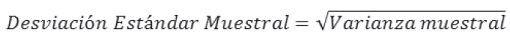 La desviación estándar muestral es una medida de dispersión que mide la distancia promedio de los datos de una muestra respecto a su media. A mayor desviación, mayor la dispersión de los datos de la muestra con respecto a su media o promedio.