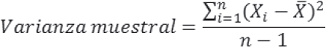 Se define la varianza de una muestra de observaciones X1, X2, ..., Xn, cuyo promedio es y n es igual al tamaño de la muestra, como: