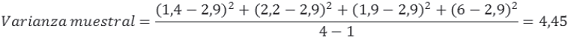Donde n es igual a 4 y el promedio de la muestra es igual a 2,9.