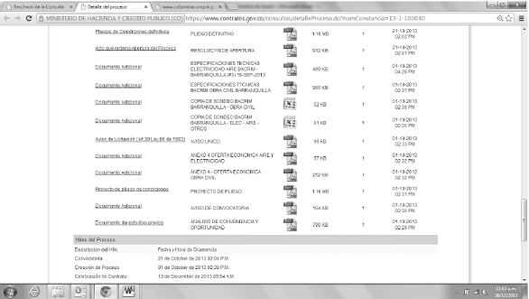 Paso 5: En la parte superior aparecerá la información del Proceso de Contratación que quiere conocer. En la parte inferior se desplegaran todos los documentos que acompañaron el proceso. Puede encontrar los siguientes Documentos del Proceso: