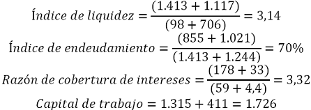 | Razón de cobertura de intereses | 3 | 7,4 |