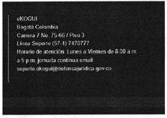 Para cualquier inquietud, puede comunicarse con el centro de contacto e-KOGUI al teléfono 7470777 o al correo electrónico soporte.ekoaui@defensaiuridica.gov.co