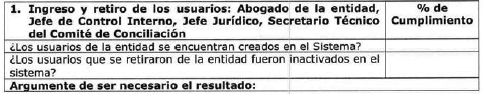 | 5.Crear, asignar claves de acceso e inactivar dentro del Sistema Único de Gestión e Información Litigiosa del Estado e-KOGUI, a los usuarios de la entidad. | MEDIO DE VERIFICACIÓN: Verificar que se haya gestionado el ingreso y retiro de usuarios para los perfiles habilitados a la fecha (Abogado de la entidad, Jefe de Control Interno, jefe de la oficina jurídica). |