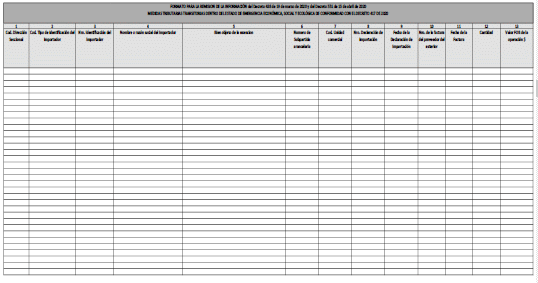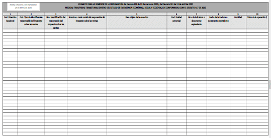 1.1. La información a la cual hace referencia el numeral 2.3. del artículo 2o del Decreto Legislativo 551 de 15 de abril de 2020, deberá ser entregada por el responsable, en formato Excel anexo a la presente circular con la siguiente información y orden: