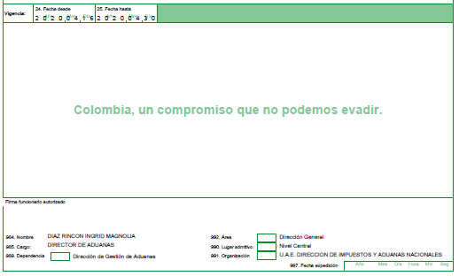 | De; | Director de Gestión de Aduanas |