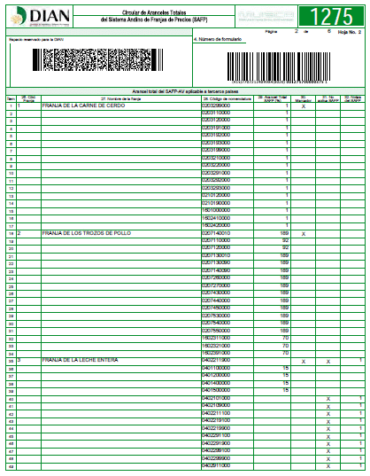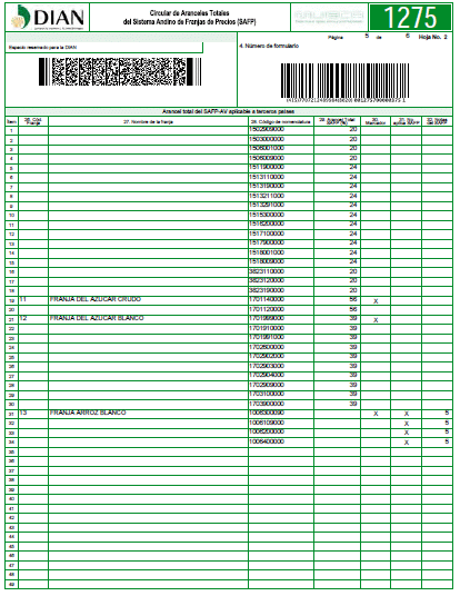 En cumplimiento de las disposiciones del Sistema Andino de las Franjas de Precios Agropecuarios (SAFP), según las Decisiones de la Comisión del Acuerdo de Cartagena, las Resoluciones emanadas de la Junta de la Comunidad Andina y demás noramitividad vigente, me permito informarles los Aranceles Totales para los productos mercadores, sus sustitutos, producto agroindustriales o subproductos señalados en dichas Normas.