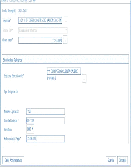 5. A la orden de pago generada en el punto anterior se vinculan instrucciones adicionales de pago CUD, registrando en el campo referencia el número del recibo de pago generado en el MUISCA