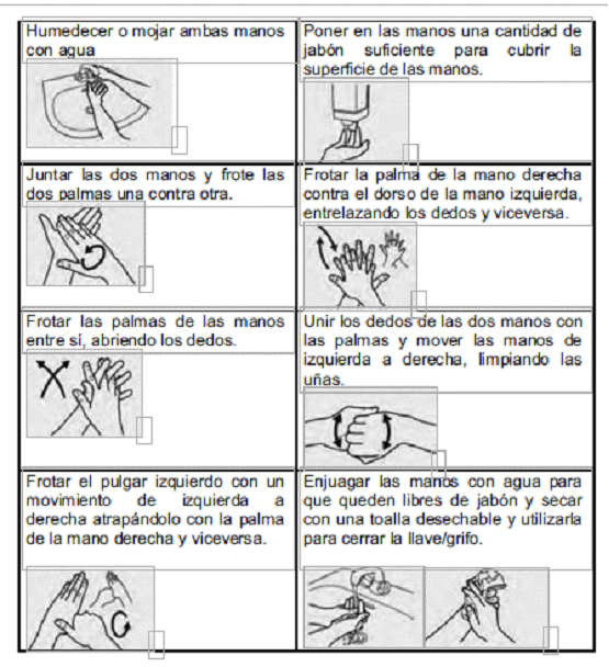 Para un correcto lavado de manos, debe seguir los pasos indicados a continuación: