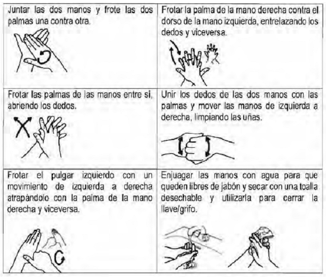 Para un correcto lavado de manos, deben seguirse los pasos indicados a continuación: