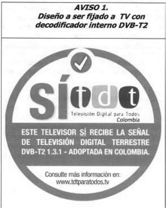 2.9.1.1.1. Si se trata de un receptor de televisión que cuenta con un decodificador interno para el servicio de Televisión Digital Terrestre compatible con el estándar DVB-T2 adoptado en el país, se le deberá fijar el siguiente aviso: