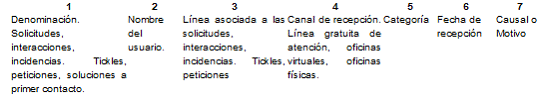 Para la compilación de la información referente a las peticiones, debe emplearse el siguiente formato, en medio magnético, en archivo de Excel editable.