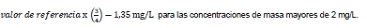 b) La desviación típica experimental para toda concentración mayor de 1 mg/L debe ser menor de 1.75 % del valor verdadero de la concentración másica.