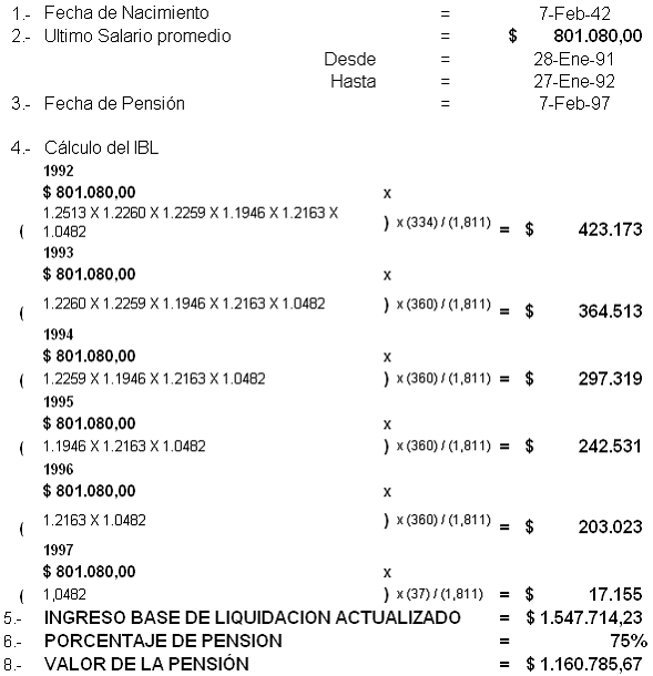 De los anteriores cálculos, se desprende en resumen, que el monto inicial de la pensión, a partir del 7 de febrero de 1997, debió ser de $1'160.785,67.
