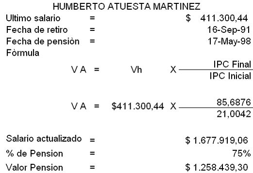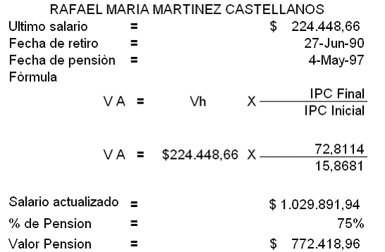 Respecto a HUMBERTO ATUESTA MARTÍNEZ y RAFAEL MARÍA MARTÍNEZ CASTELLANOS, se revocará la absolución del a quo en punto a la actualización de la base salarial para la liquidación de su primera mesada pensional. Para establecer su valor se tienen en cuenta los siguientes datos, que reflejan los documentos arriba señalados, y se indican las operaciones correspondientes, así: