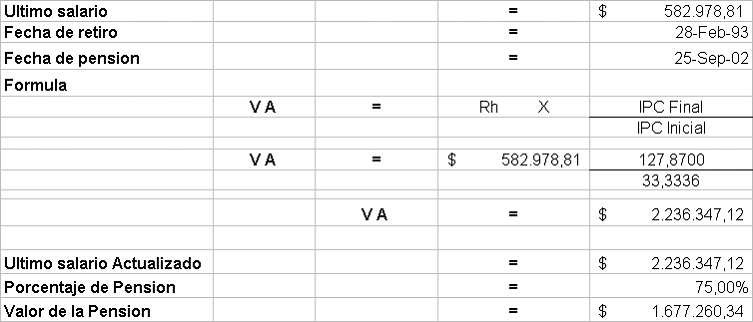 Casada parcialmente la sentencia en cuanto al cálculo de la actualización monetaria, procede la Corte, en sede de instancia a aplicar la fórmula establecida al resolver el recurso. Para tales efectos, se tienen como parámetros de la liquidación, los siguientes: