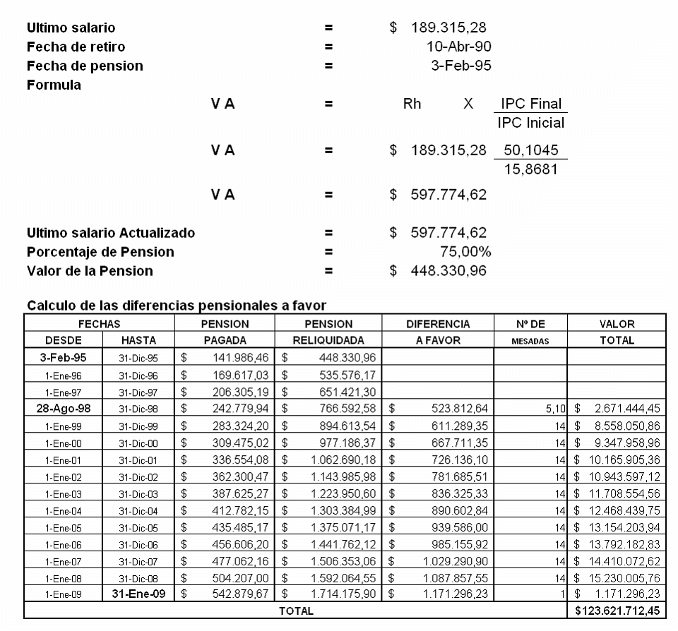 La Sala Laboral, de la Corte Suprema de Justicia se ha pronunciado mayoritariamente a favor de la actualización del salario base de liquidación de la primera mesada de las pensiones de jubilación causadas a partir de la vigencia de la Constitución Política de 1991. Entre reiterados pronunciamientos, se menciona el de radicación 32708 del 20 de mayo de 2008, en proceso contra la misma entidad bancaria demandada, donde una vez más se ratifica que: