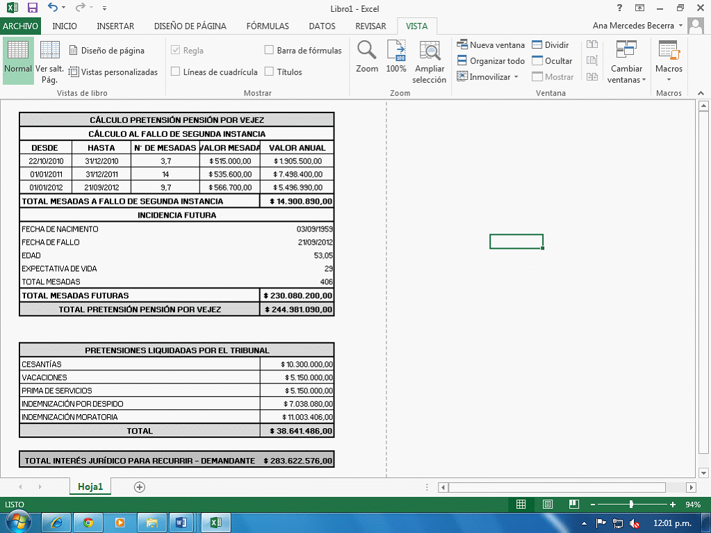 Así las cosas, se procede a efectuar los cálculos de rigor: