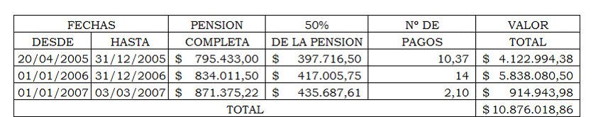 Por concepto de retroactivo pensional causado entre el 20 de abril de 2005 y el 3 de marzo de 2007, se adeuda a la señora Luz Marina García Úsuga la suma de $10.876.018.86, conforme con el siguiente cuadro: