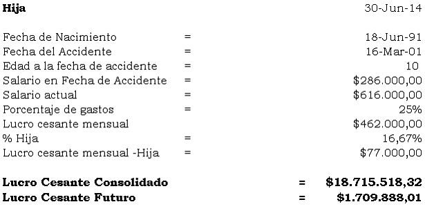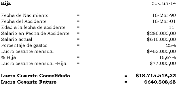 En este asunto advierte la Sala que para el momento del fallecimiento Judith Paola, Diana Marcela y Evelyn del Carmen Díaz Acevedo dependían económicamente de su padre, dado que según la prueba recaudada en el proceso su madre laboraba en el hogar sin contraprestación y esta a no dudarlo también se vio afectada por tal circunstancia. Teniendo en cuenta lo anterior se procede a la tasación actualizada a 2 de abril de 2014: