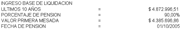 Teniendo presentes tales premisas, el ingreso base de liquidación, como quedó clarificado en sede de casación, asciende a la suma de $4.872.996.51, al cual se le debe aplicar un porcentaje de liquidación de 90%, de acuerdo al número de 1545 semanas cotizadas, que fue deducido por el a quo y no fue materia de apelación, lo que redunda en un monto inicial de la pensión equivalente a la suma de $4.385.696.86, como se expresa en el siguiente esquema: