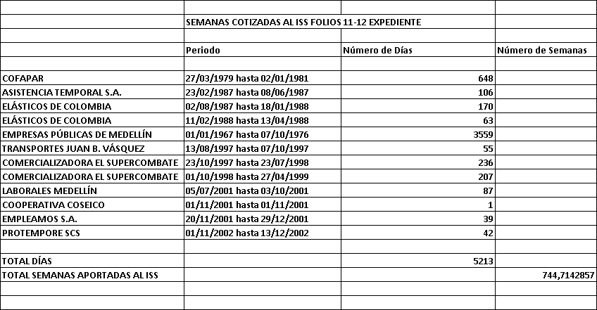 Como fundamento fáctico de sus pretensiones, el demandante adujo que nació el 14 de febrero de 1948, por lo que para la fecha contaba con 60 años y 8 meses de edad; que laboró para las Empresas Públicas de Medellín por el periodo comprendido entre el 5 de diciembre de 1966 y el 7 de octubre de 1976, tiempo que fue reportado al ISS a través de la figura del bono pensional; que, además, laboró para el Hospital Mental de Antioquia entre el 25 de abril de 1988 y el 15 de julio de 1992, tiempo que también fue trasladado al Instituto demandado; que, igualmente, prestó sus servicios para diferentes empleadores privados, los cuales cotizaron a su nombre por los riesgos de invalidez, vejez y muerte; que, estuvo afiliado al Consorcio Prosperar; que cotizó un total de 648.4286 semanas por parte de las Empresas Públicas de Medellín, Cofapar, Asistencia Temporal y Elásticos de Colombia, así como 100.571 semanas para diversos empleadores y 38.571 semanas, a través del Régimen Subsidiado en Pensiones, por lo que aportó un total de 1006.9991 semanas; que, en consecuencia, era acreedor de la pensión de vejez; que el 20 de febrero de 2008, procedió a agotar la vía gubernativa; que la entidad demandada reconoció el tiempo laborado para las Empresas Públicas de Medellín, a través de la Resolución No. 024696 de 30 de septiembre de 2007; que, en ese orden de ideas, debía pagársele la prestación de vejez con las respectivas mesadas indexadas, así como los intereses moratorios del artículo 141 de la Ley 100 de 1993.