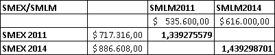 | 2014 | 20.533,33 | 616.000,00 | 4,50 | 3068 de diciembre 30 de 2013 |