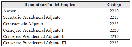 4. Los empleos de Consejero Presidencial Ejecutivo y Secretario Presidencial Adjunto, percibirán la remuneración señalada en el Decreto 315 de 2018, para el empleo de Asesor Código 2210 Grado 14.