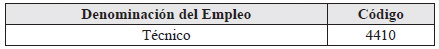 ARTÍCULO 10. NOMENCLATURA DE LOS EMPLEOS DEL NIVEL TÉCNICO. La nomenclatura de empleo del nivel técnico, queda integrada por las siguientes denominaciones de empleo: