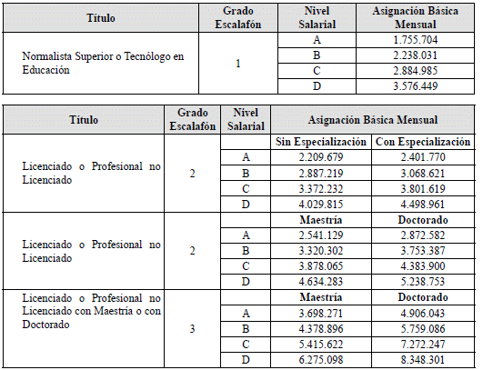 a) Según el grado que los docentes acrediten en el escalafón: