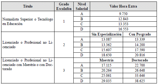 | Grado Escalafón | Valor Hora Extra |