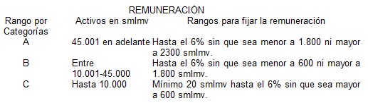 Para el cálculo del valor de la remuneración total del liquidador, se tendrá como base el monto de los activos de la entidad en proceso de liquidación, al cual se le aplicarán los límites establecidos en la siguiente tabla, según corresponda, de acuerdo con la categoría a la que pertenezca la entidad en proceso de liquidación.