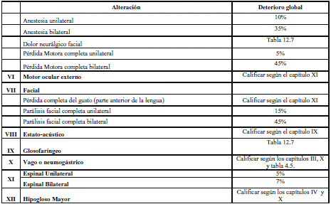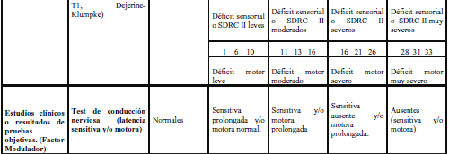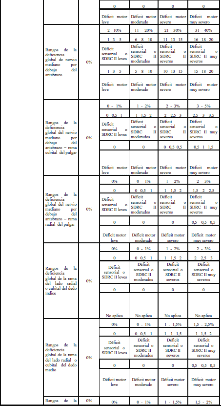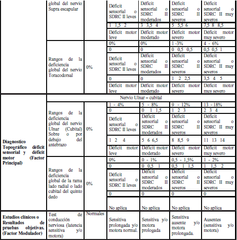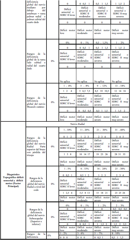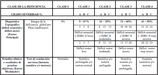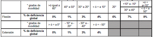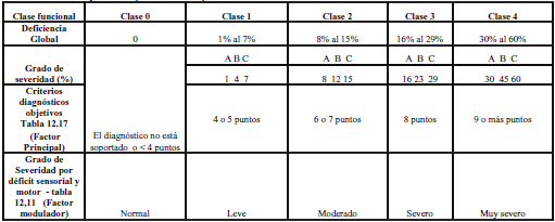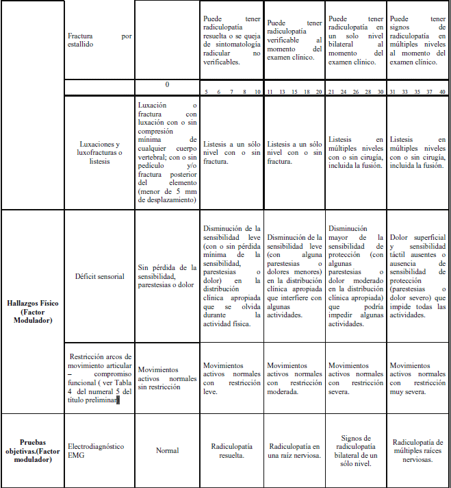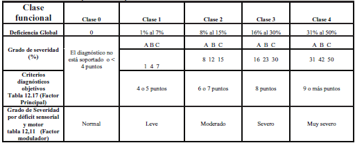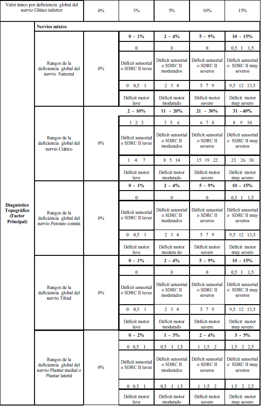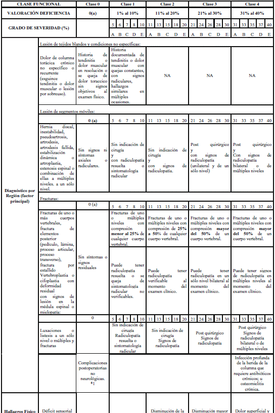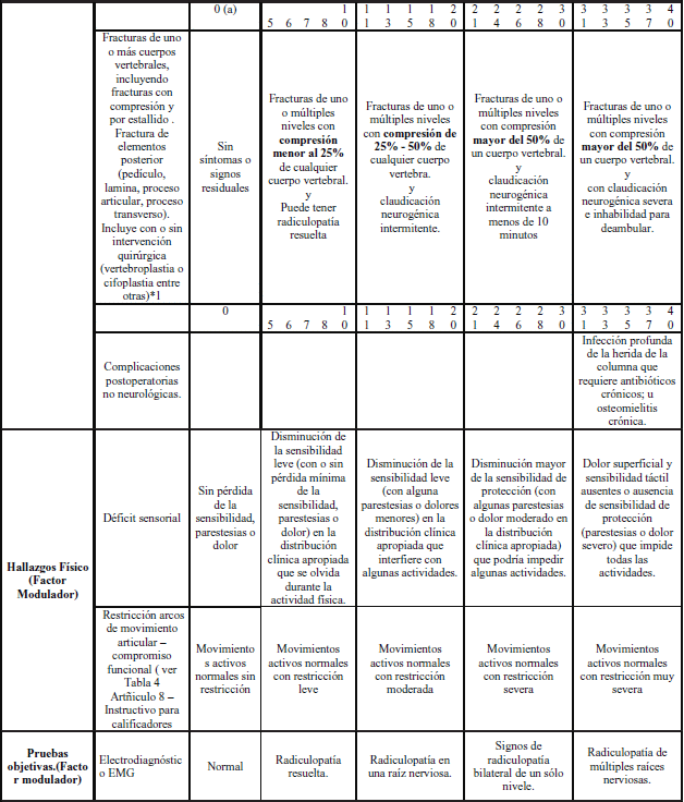 *1 Si presenta síndrome de cauda equina se califica en SNC y la radiculopatía se califica en el SNP. Luego se combinan con las deficiencias de este capítulo