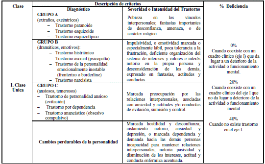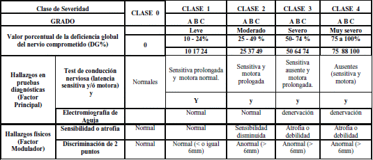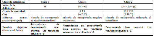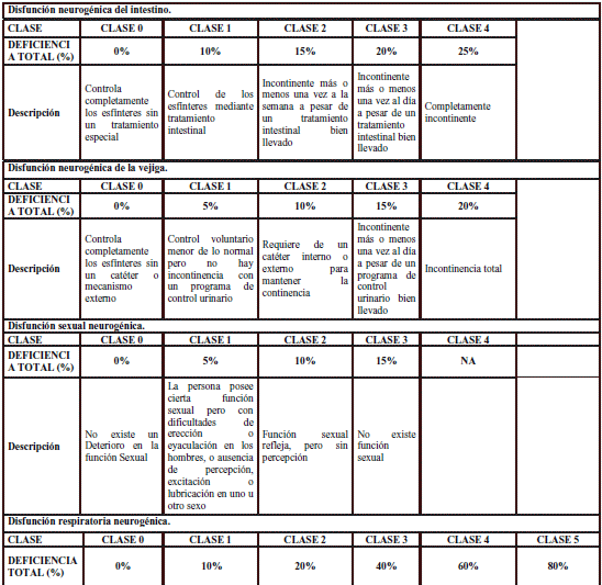 Tabla 2. Modelo genérico para las tablas de calificación de las deficiencias
