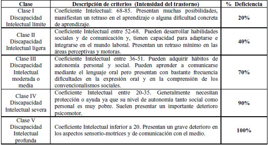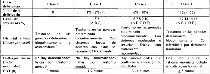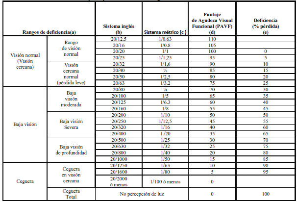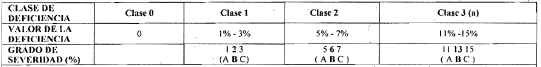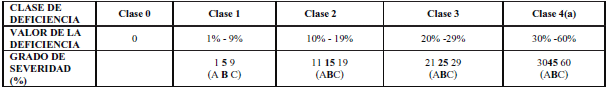 b. Porcentaje de deficiencia: Los valores porcentuales asignados para cada clase de deficiencia van de 0 a 100%.