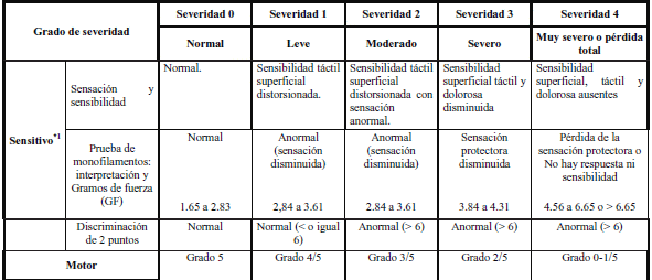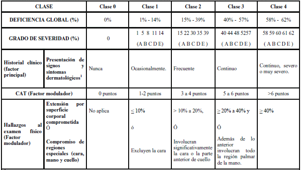 a b Los descriptores leve, moderado, severo y muy severo serán específicos para la enfermedad.