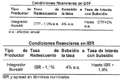 4. Tasa de Redescuento y de Interés al Beneficiario: La línea contará con el siguiente esquema de otorgamiento del subsidio a la tasa final al productor