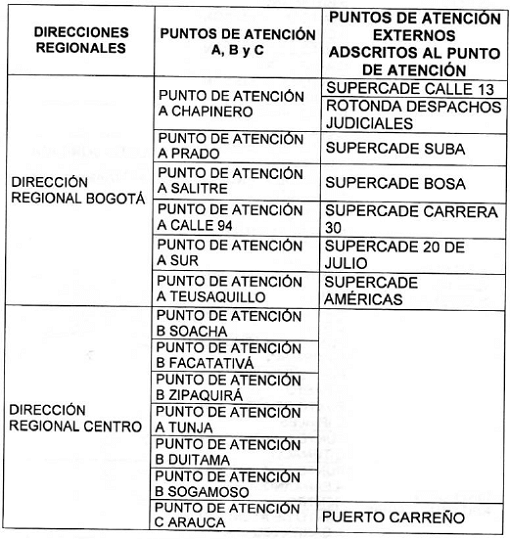 | REGIONAL CENTRO | PUNTO DE ATENCIÓN C FACATATIVA | PUNTO DE ATENCIÓN B FACATATIVA |