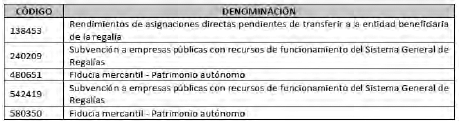No obstante, cuando se distribuyan recursos de regalías, pero no se identifique la entidad beneficiaria de la regalía, el órgano del SGR u otra entidad a la que se le asignen recursos de regalías (como en el caso de las asignaciones directas, el Fondo de Ahorro y Estabilización, el Fondo de Desarrollo Regional para compensar asignaciones directas, la asignación para la paz y los gastos de fiscalización y funcionamiento del SGR), con la instrucción de abono en cuenta, el MHCP, en la contabilidad del SGR, debitará la subcuenta 991534-Regalías distribuidas pendientes de asignar de la cuenta 9915-ACREEDORAS DE CONTROL POR CONTRA (DB) y acreditará la subcuenta que corresponda de la cuenta 9370-REGALÍAS DISTRIBUIDAS PENDIENTES DE ASIGNAR.