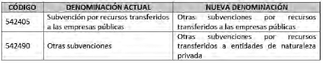 ARTÍCULO 2o. <Resolución derogada por el artículo 1 de la Resolución 161 de 2020> Modificar la denominación de las siguientes subcuentas en la estructura del Catálogo General de Cuentas del Marco Normativo para Entidades de Gobierno: