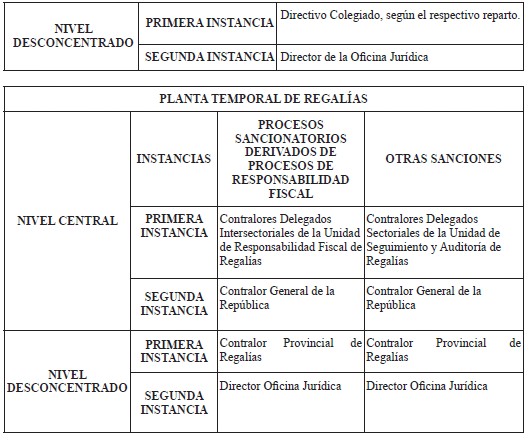 ARTÍCULO 2o. COMPETENCIA. <Resolución derogada por el artículo 14 de la Resolución REG-ORG-0039 de 2020> <Artículo modificado por el artículo 1 de la Resolución REG-ORG-0031 de 2019. El nuevo texto es el siguiente:> De conformidad con la estructura orgánica de la Contraloría General de la República y bajo criterios de territorialidad y especialidad, por delegación o función legalmente establecida, se fijan las competencias para adelantar el procedimiento administrativo sancionatorio, así: