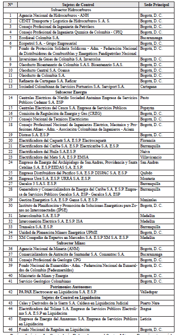 ARTÍCULO 8o. CONTRALORÍA DELEGADA PARA EL SECTOR MINAS Y ENERGÍA. <Resolución derogada por el artículo 21 de la Resolución 48 de 2019> La Contraloría Delegada para el Sector Minas y Energía será competente para ejercer la vigilancia y el control fiscal a los siguientes sujetos de control: