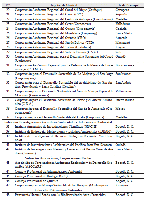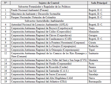 ARTÍCULO 3o. CONTRALORÍA DELEGADA PARA EL MEDIO AMBIENTE. <Resolución derogada por el artículo 21 de la Resolución 48 de 2019> La Contraloría Delegada para el Medio Ambiente será competente para ejercer la vigilancia y el control fiscal a los siguientes sujetos de control: