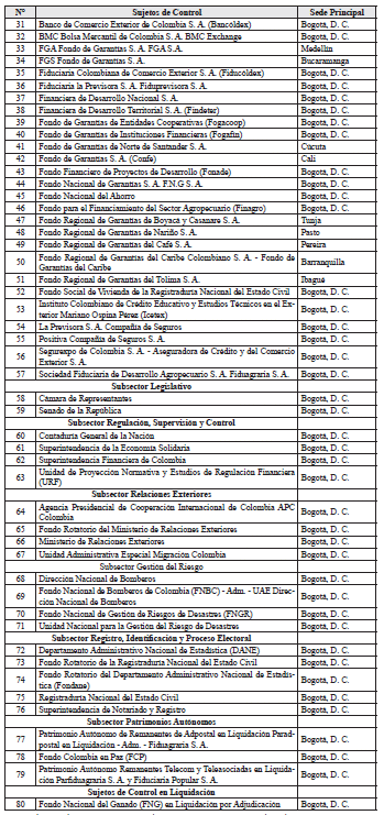 Que la Ley 42 de 1993 en el artículo 2o, determina los sujetos de control fiscal de la Contraloría General de la República, indicando: “…los órganos que integran las ramas legislativa y judicial; los órganos autónomos e independientes como los de control y electorales; los organismos que hacen parte de la estructura de la administración nacional y demás entidades nacionales, los organismos creados por la Constitución Nacional y la Ley que tienen régimen especial, las sociedades de economía mixta; las empresas industriales y comerciales del Estado, los particulares que manejen fondos o bienes del Estado, las personas jurídicas y cualquier otro tipo de organización o sociedad que maneje recursos del Estado en lo relacionado con estos y el Banco de la República”.