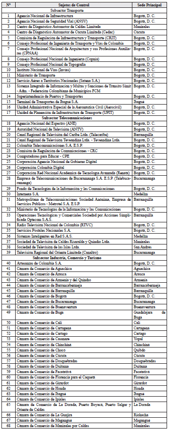 ARTÍCULO 6o. CONTRALORÍA DELEGADA PARA EL SECTOR INFRAESTRUCTURA FÍSICA Y TELECOMUNICACIONES, COMERCIO EXTERIOR Y DESARROLLO REGIONAL. <Resolución derogada por el artículo 21 de la Resolución 48 de 2019> La Contraloría Delegada para el Sector Infraestructura Física y Telecomunicaciones, Comercio Exterior y Desarrollo Regional, será competente para ejercer la vigilancia y el control fiscal a los siguientes sujetos de control: