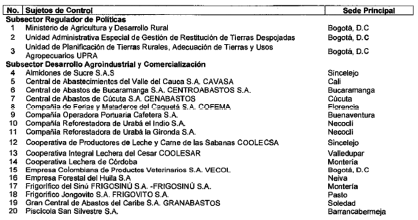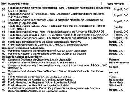 ARTÍCULO 2o. CONTRALORÍA DELEGADA PARA EL SECTOR AGROPECUARIO. La Contraloría Delegada para el Sector Agropecuario será competente para ejercer vigilancia y control fiscal a los siguientes sujetos de control: