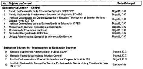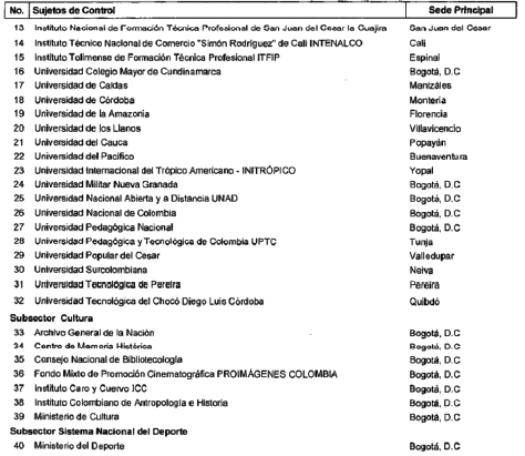 ARTÍCULO 6o. CONTRALORÍA DELEGADA PARA EL SECTOR EDUCACIÓN, CIENCIA Y TECNOLOGÍA, CULTURA, RECREACIÓN Y DEPORTE. La Contraloría Delegada para el Sector Educación, Ciencia y Tecnología, Cultura, Recreación y Deporte será competente para ejercer la vigilancia y el control fiscal a los siguientes sujetos de control: