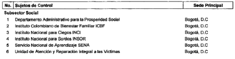 ARTÍCULO 8o. CONTRALORÍA PARA EL SECTOR INCLUSIÓN SOCIAL. La Contraloría Delegada para el Sector Inclusión Social, será competente para ejercer la vigilancia y el control fiscal a los siguientes sujetos de control: