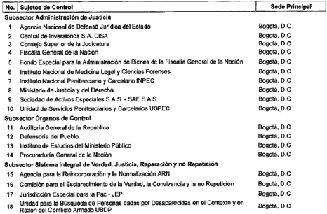 ARTÍCULO 10. CONTRALORÍA DELEGADA PARA EL SECTOR JUSTICIA. La Contraloría Delegada para el Sector Justicia, será competente para ejercer la vigilancia y el control fiscal a los siguientes sujetos de control: