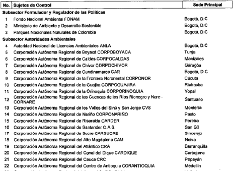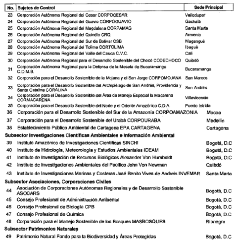 ARTÍCULO 11. CONTRALORÍA DELEGADA PARA EL MEDIO AMBIENTE. La Contraloría Delegada para el Medio Ambiente será competente para ejercer la vigilancia y el control fiscal a los siguientes sujetos de control: